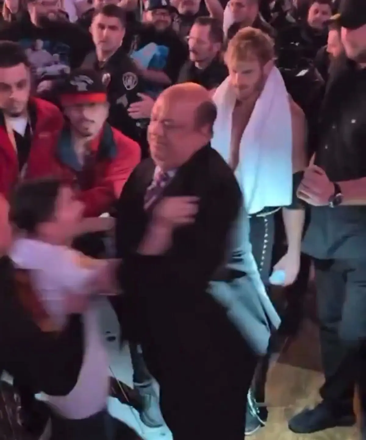 Al ver de inmediato al joven, Heyman de inmediato lo empujo y alejó del influencer Logan Paul, el cual fue uno de los participantes de la contienda.